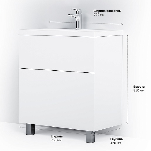 Тумба под раковину Gem 75 белый глянец