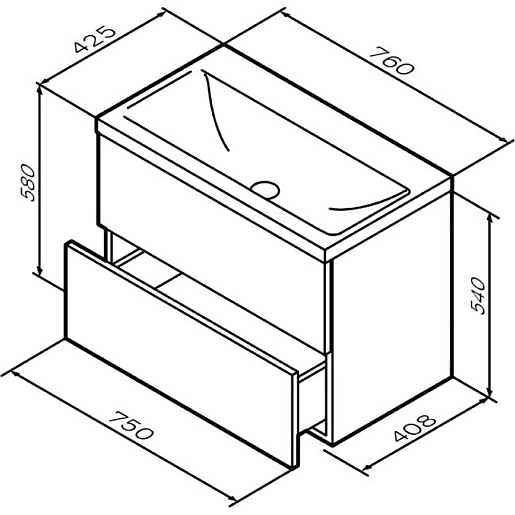 - 2 выдвижных ящика с системой открытия нажатием Push to Open.