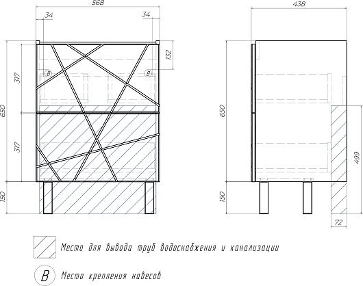 Тумба с раковиной Vigo Geometry 2-600 Como - арт. 015 / S-UM-COM60/1-w.