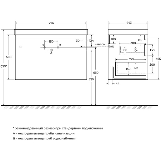 Тумба под раковину Giubileo 80 подвесная титан