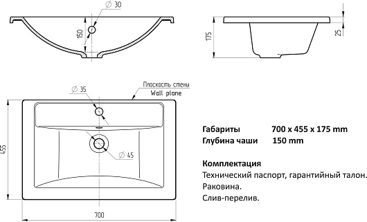 - Раковина из литьевого мрамора.