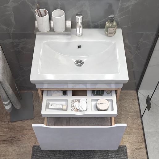 Тумба под раковину Grani 600-0-1 подвесная белая/дуб золотой