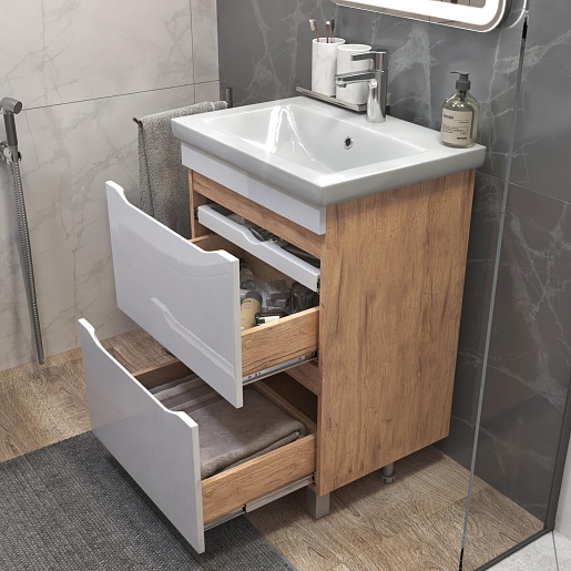 Тумба с раковиной Vigo Grani 600-0-2 - арт. 201 дуб золотой / S-UM-COM60/1-w VIGO.