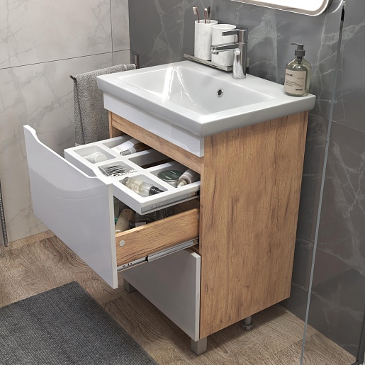 Тумба под раковину Grani 600-0-2 белая/дуб золотой