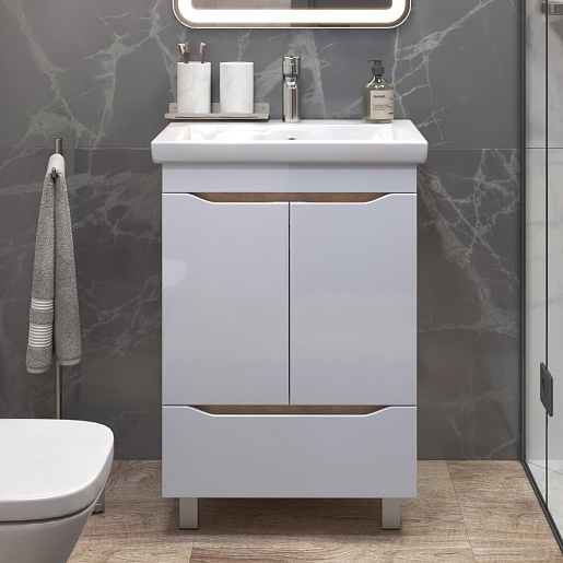 Vigo Тумба с раковиной Grani 600-2-1 белая/дуб золотой