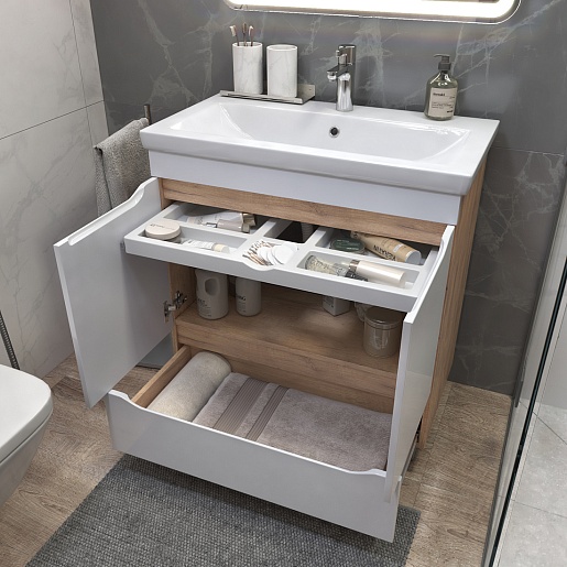 Тумба под раковину Grani 80 напольная белая/дуб золотой