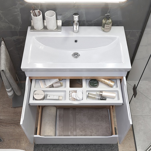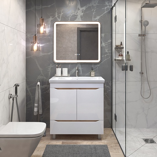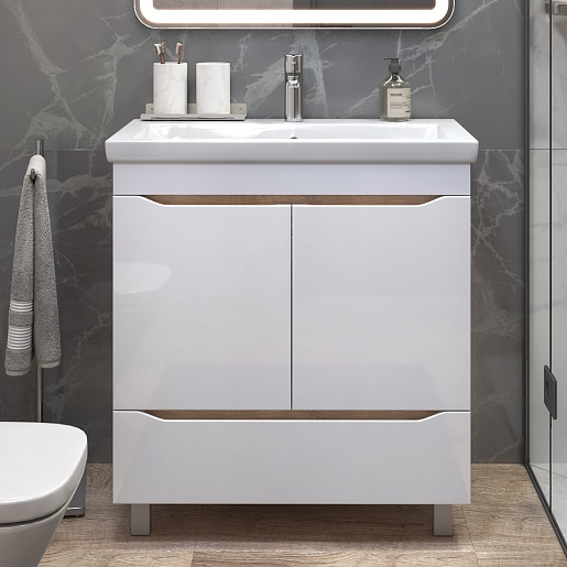 - Тумба под раковину без столешницы Vigo Grani 80 белая, дуб золотой.
