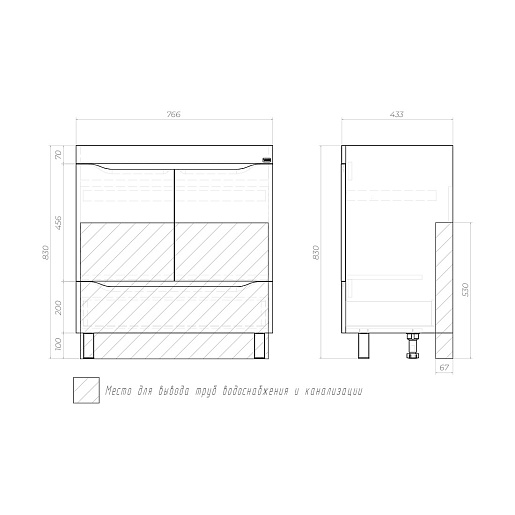 Vigo Тумба с раковиной Grani 80 напольная белая/дуб золотой – картинка-18