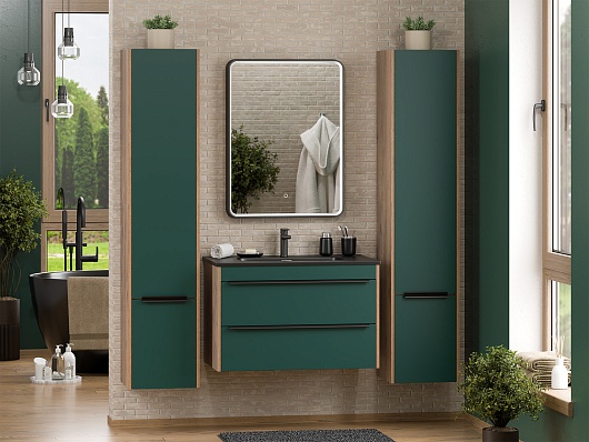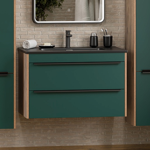 Тумба под раковину Greenwood 80 подвесная зеленая матовая/дуб галифакс олово