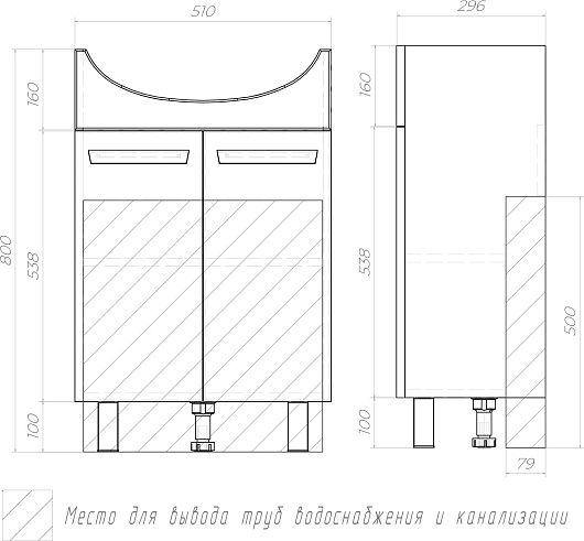 Тумба с раковиной Vigo Hoska 55 - арт. 229 / Вн МуБ03.