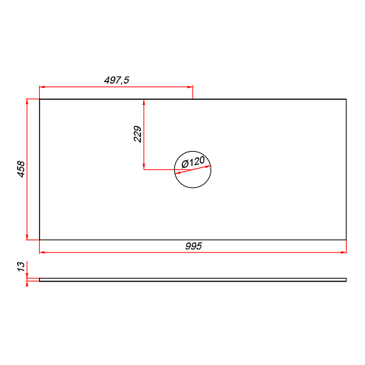 Столешница в ванную под раковину 100/45 1 вырез белая