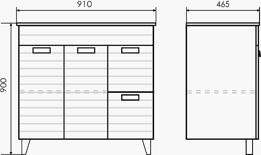 - 2 распашные дверцы, 2 выдвижных ящика.