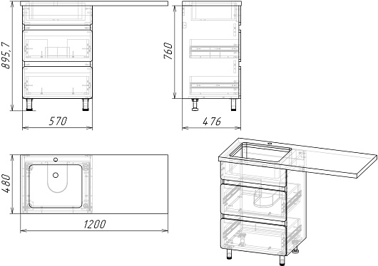 - 3 выдвижных ящика.