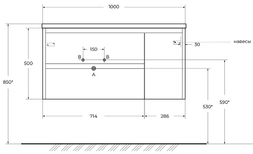 Тумба под раковину Kraft 100 L подвесная Rovere Galifax Bianco