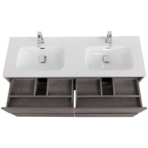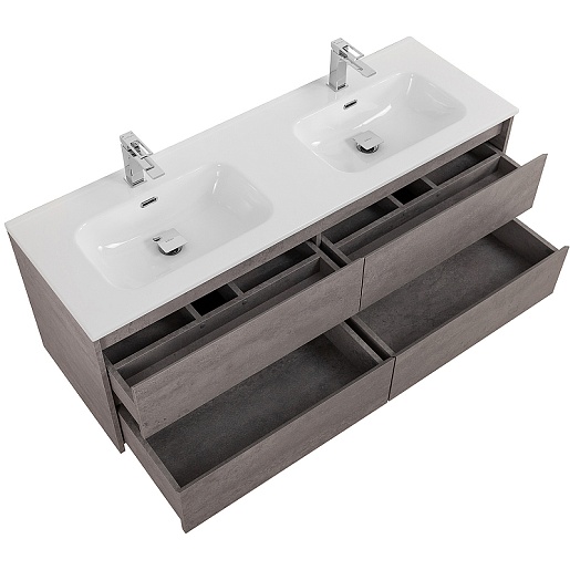 Тумба под раковину Kraft 140 подвесная 4 ящика Cemento Grigio двойная раковина