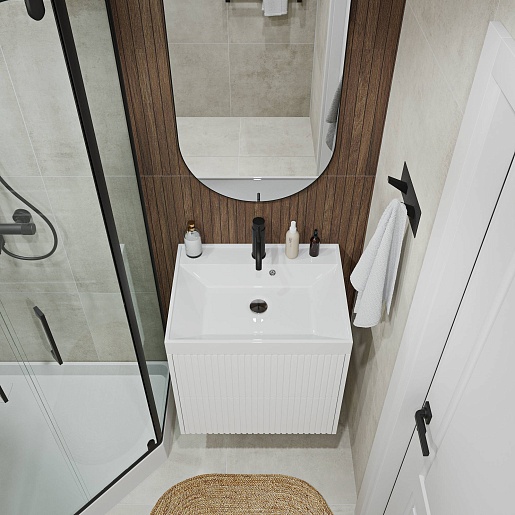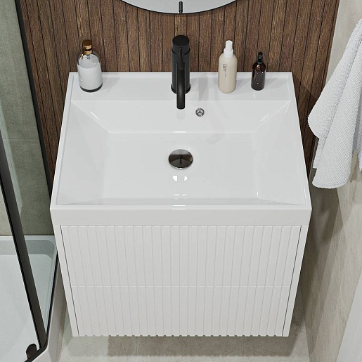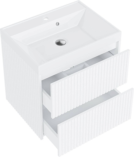 Подвесная тумба с раковиной Vivon Kristi 60 белая матовая рифленая.