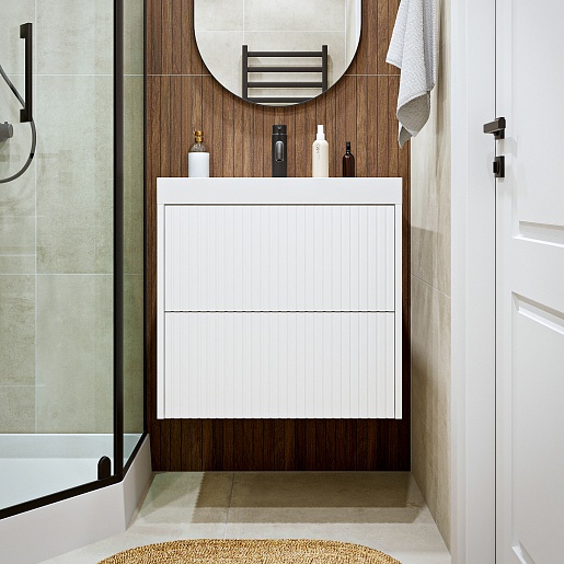 Тумба под раковину Kristi 60 подвесная белая матовая рифленая