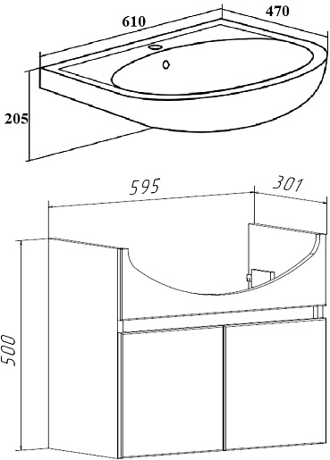 Подвесная тумба с раковиной Runo Лада 60 - арт. 00-00001371 (4656760155007) / 00000000154 (4620008192772).