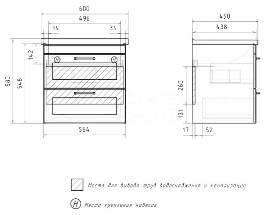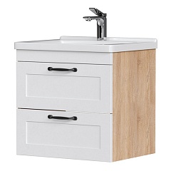 Тумба под раковину Lago 60 2 ящика подвесная белая/дерево
