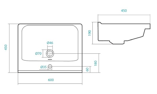 - Диаметр слива: 4,5 см.