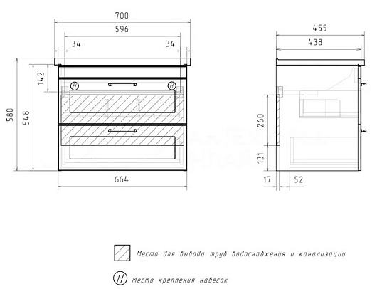 Тумба под раковину Lago 70 2 ящика подвесная белая/дерево