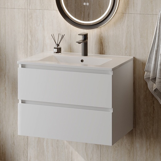 Тумба под раковину Laina 70 подвесная белая матовая