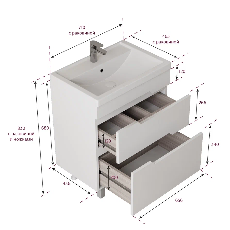 - Ножки (2 декоративных и 2 пластиковых) идут в комплекте с тумбой.