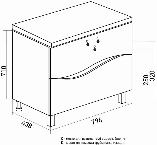 Комплектация: тумба, раковина, ножка (4 шт.).