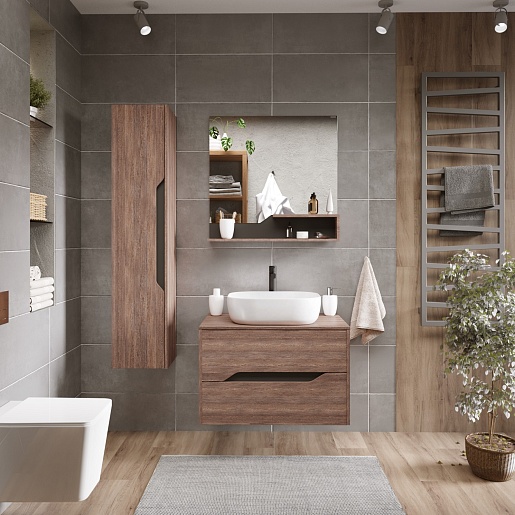 Тумба под раковину Лайф 80 подвесная винтажное дерево темное/графит