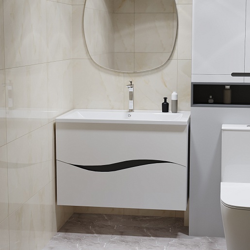 Mixline Тумба с раковиной Лайф 80 подвесная белая