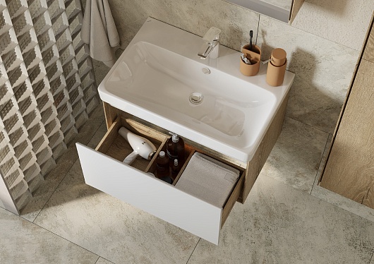 Акватон Тумба с раковиной Либерти 70 белая/дуб эльвезия