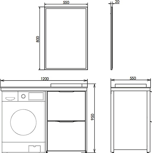 Подвесная тумба с раковиной Comforty Лозанна 120 под стиральную машину - арт. 00-00014813CF.