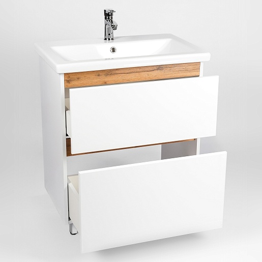 Тумба под раковину Мальта 60 белая/дуб вотан