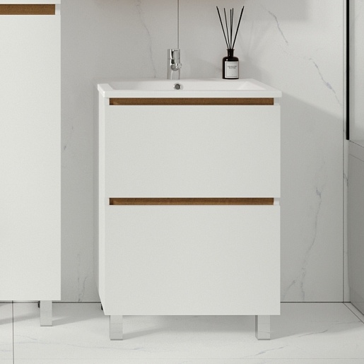 Viant Тумба с раковиной Мальта 60 белая/дуб вотан