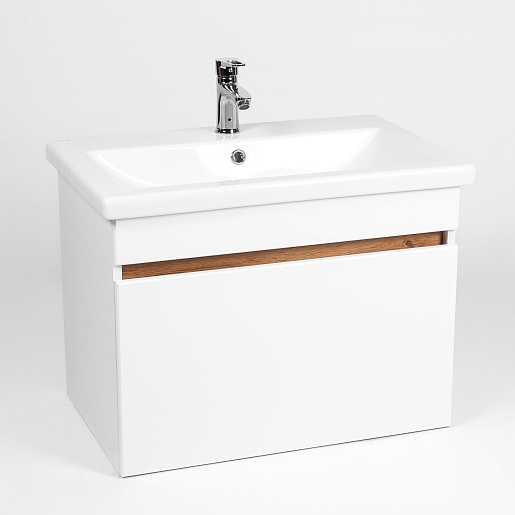 Тумба под раковину Мальта 70 1 ящик подвесная белая/дуб вотан