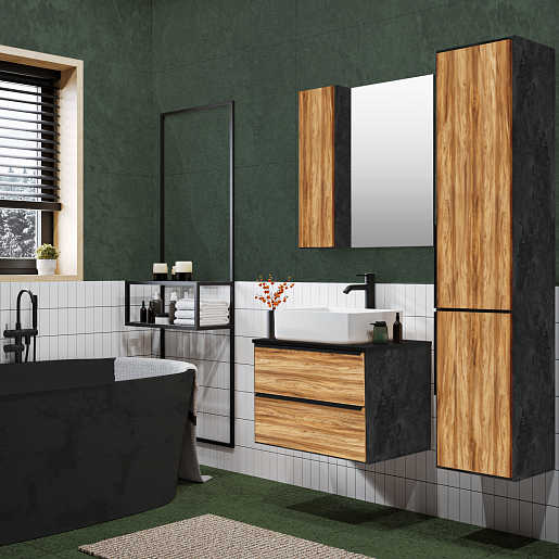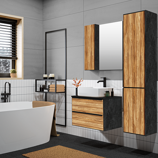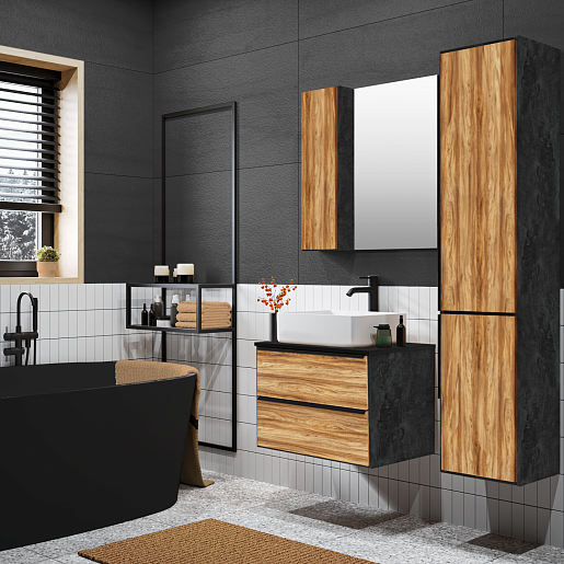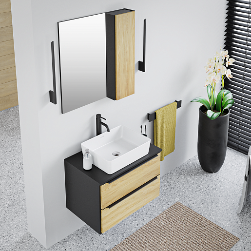 Тумба под раковину Мальта 70 подвесная дуб/черная