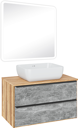 Тумба под раковину Мальта 85 подвесная дуб/серая