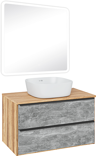 Тумба под раковину Мальта 85 подвесная дуб/серая