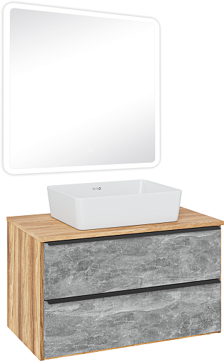Runo Тумба с раковиной Мальта 85 Tre подвесная серая/дуб