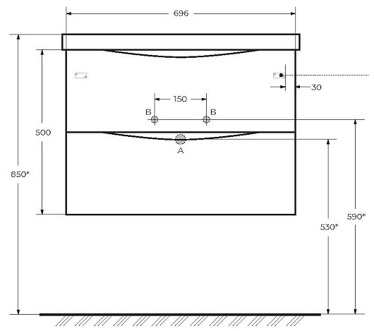 Два ящика с фрезерованными ручками в плоскости фасада.