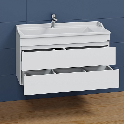Тумба под раковину Марс 100 2 ящика подвесная белая