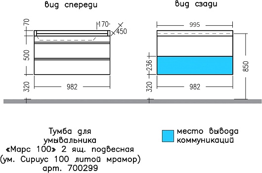 Подвесная тумба с раковиной Санта Марс 100 - арт. 700299 / Sirius100.