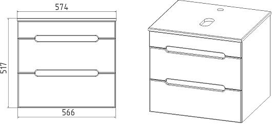 Подвесная тумба с раковиной Viant Марсель 57 - арт. VMAR57NG-T2YP / 63570.