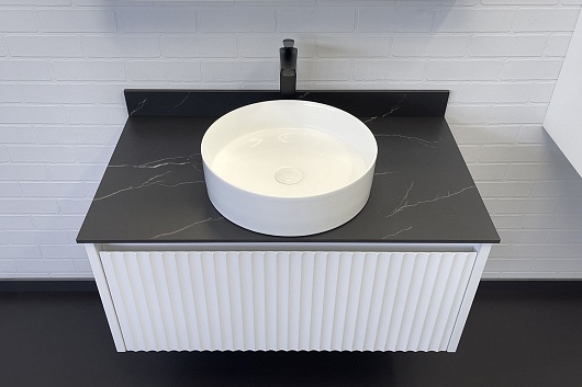 - Столешница из керамогранита в цвете Калакатта Блэк.
