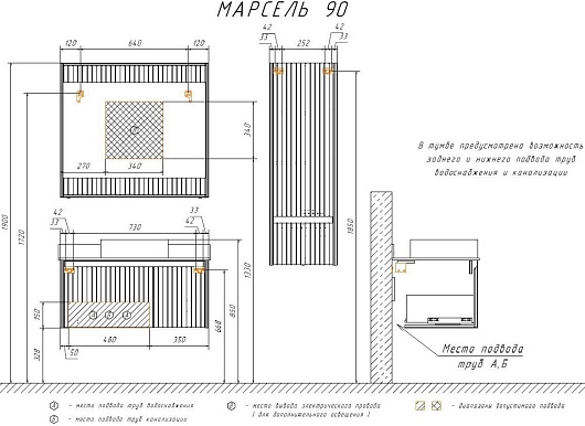 В комплекте: тумба, раковина, столешница, крепеж.