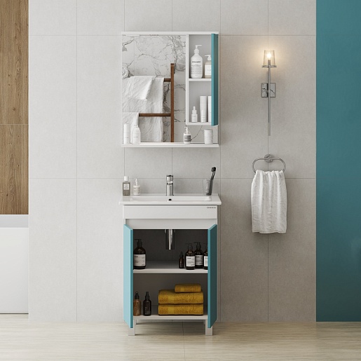 Onika Тумба с раковиной Марви 60 белая/бирюзовая