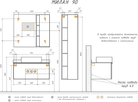 Подвесная тумба с раковиной Comforty Милан 90 - арт. 00-00014008CF.