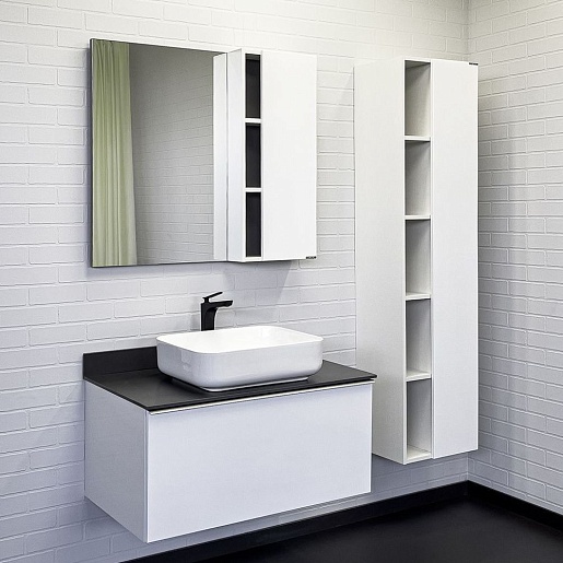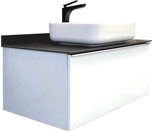 Comforty Тумба с раковиной Милан 90 T-Y9378 с графитовой столешницей подвесная белая