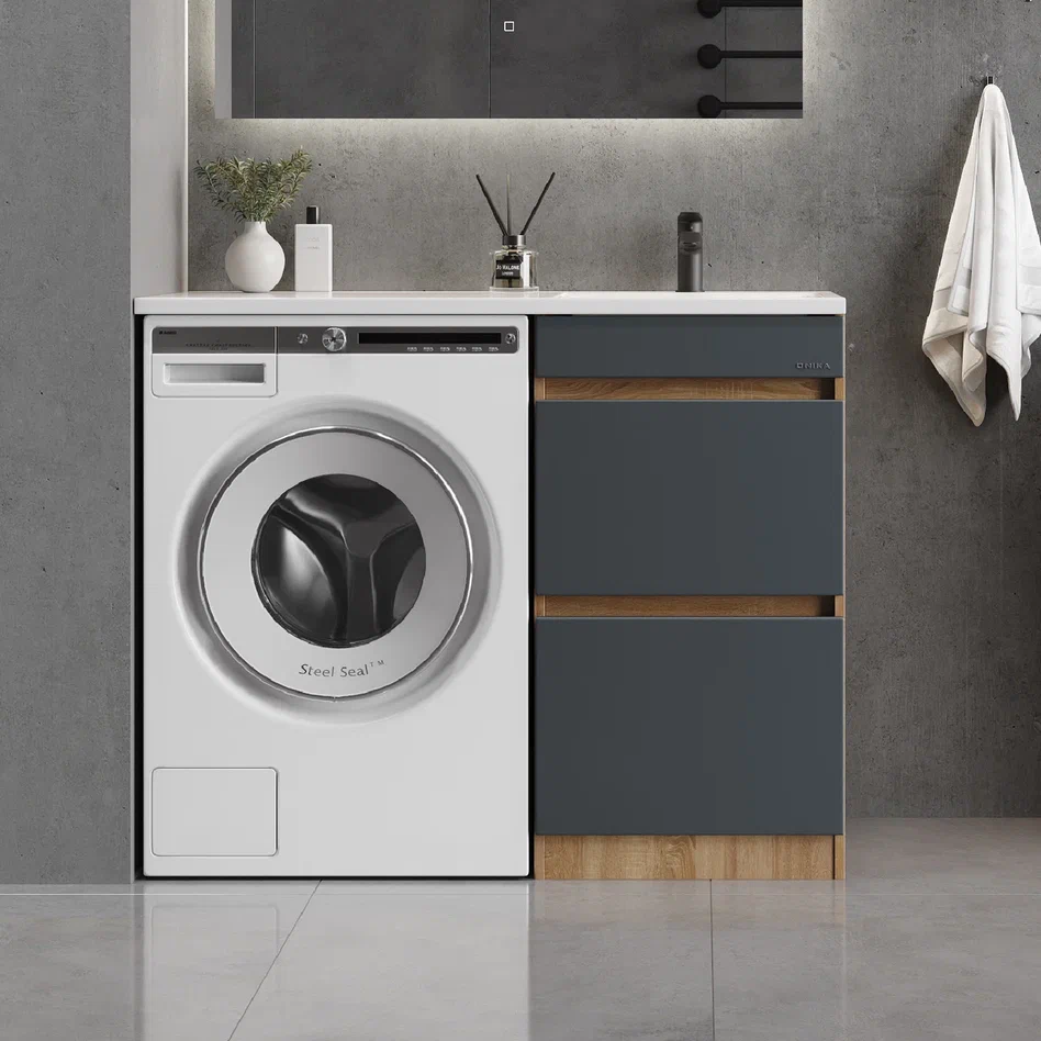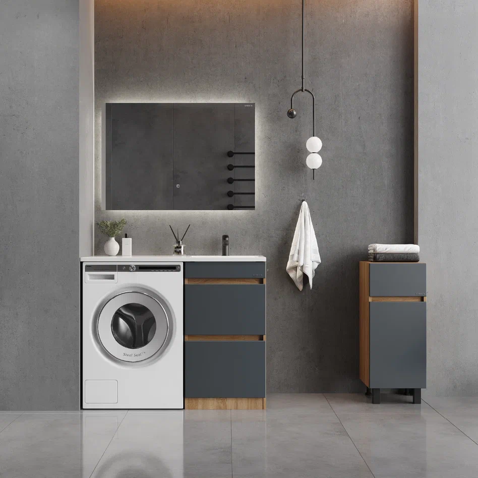 Тумба под раковину Милтон 48 напольная под стиральную машину графит/дуб сонома