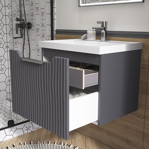 Тумба под раковину Mirage 60 1 ящик подвесная графит софт
